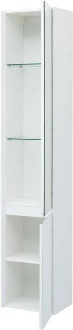 Шкаф-пенал Aquanet Гласс 35 белого цвета является не только местом для размещения необходимых в ванной комнате мелочей, но и зеркалом, которое установлено на верхнем фасаде. Два просторных ящика формируют удобную зону хранения. Дверки лишены выступающих деталей, ручки интегрированы в фасад. Шкаф-пенал шириной 35 см можно из подвесного элемента преобразовать в напольный, просто докупив универсальные ножки.