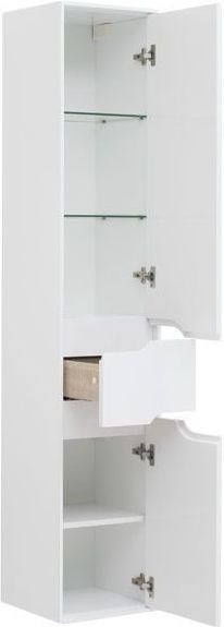 Шкаф-пенал Aquanet Модена 35 белого цвета предназначен для тех, кто хочет создать особую атмосферу в своей ванной комнате, кого привлекает все оригинальное, но кто при этом отдает должное традициям, практичности и функциональности. Привлекательной деталью служат интегрированные ручки в виде зигзага, напоминающего молнию, что очень освежает внешний вид этого простого по форме предмета мебели. Белоснежные корпус и фасад пенала выполнены из влагостойких плит МДФ. Пенал предлагает вместительную зону хранения за двумя распашными дверцами и внутри расположенного между ними выдвижного ящика, предназначенного под мелкие предметы. Механизмы выдвижения снабжены доводчиками известного немецкого производителя фурнитуры Hettich. Тумба предусматривает подвесную систему монтажа. <