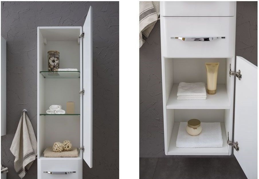 Шкаф-пенал Aquanet Виченца 36 белого цвета смотрится уютно и по-домашнему. Ощущение легкости форм подчеркивает подвесная система монтажа модели – пенал словно парит над полом. В нем три зоны хранения: полки за распашными дверцами и находящийся посередине выдвижной ящик. За счет установленных на всех дверцах и ящиках доводчиках производства компании Hettich (Германия) пользоваться пеналом будет приятно, так как открывание и закрывание дверок и ящика плавное, спокойное и без неприятных звуков. Настоящим украшением пенала служат эксклюзивные ручки производства турецкой компании System. Они выглядят очень изящно и стильно. <