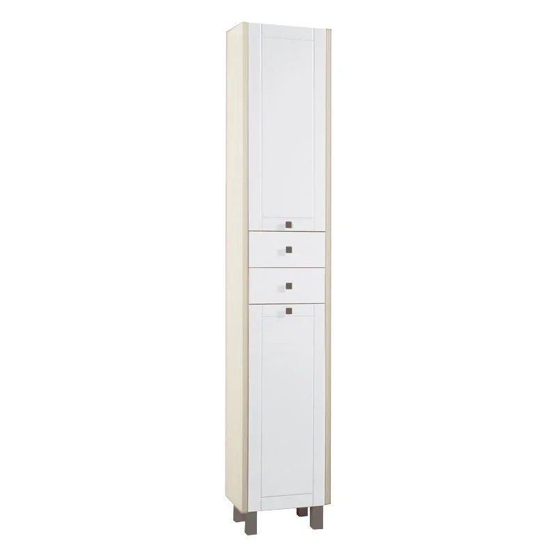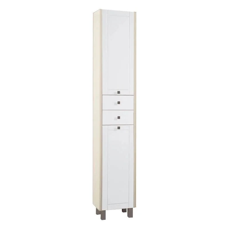 Корпус напольного шкафа-колонны Альпина выполнен в классическом стиле в цвете молочного дуба, что гармонично впишется практически в любой интерьер. Фасады окрашены в белый цвет с высокой степенью глянца полиэфирной краской ультрафиолетового отверждения. Шкаф-колонна состоит из трех отделений: верхний фасад, два центральных ящика и нижний фасад. За верхним фасадом находятся регулируемые по высоте полки, на которых удобно разместить все необходимые принадлежности, а ящики идеально подойдут для мелочей. За нижним фасадом также находятся регулируемые по высоте полки. Еще одна особенность колонны - возможность перевешивания фасадов на противоположную сторону, поэтому ее можно использовать как в левом, так и в правом исполнении.