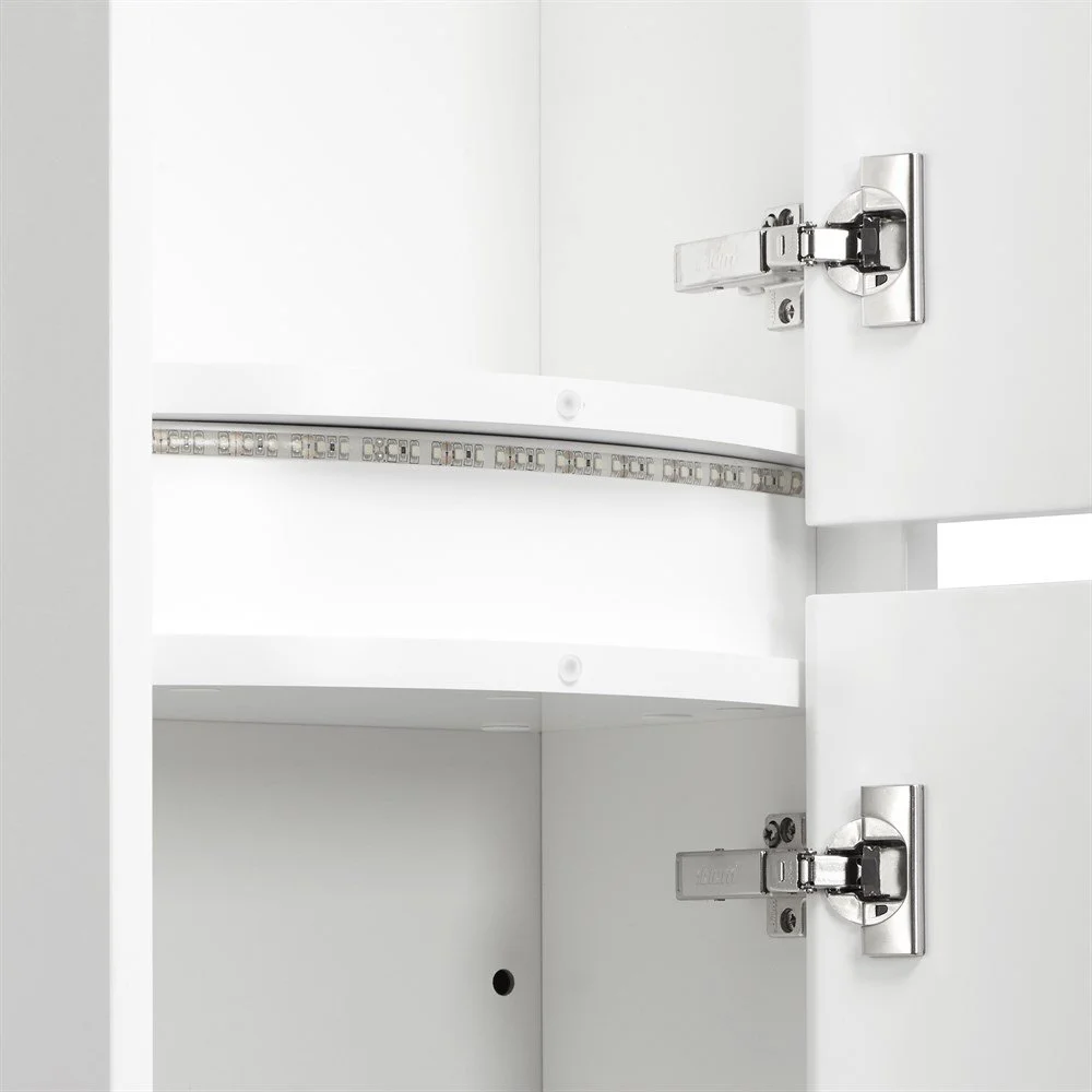 Шкаф-колонна АСТЕРА правый встроена LED-подсветка, которая подключается к общей сети электропитания в ванной комнате. Гнутоклеёные фасады безупречно окрашены с обеих сторон в белый глянец. Отсутствие лицевой фурнитуры позволяет вписать мебель практически в любой интерьер и делают ее еще более удобной. Петли с интегрированным механизмом плавного довода с системой Blumotion австрийского производителя BLUM гарантируют безупречную работу и длительный срок службы.