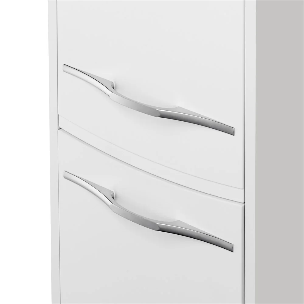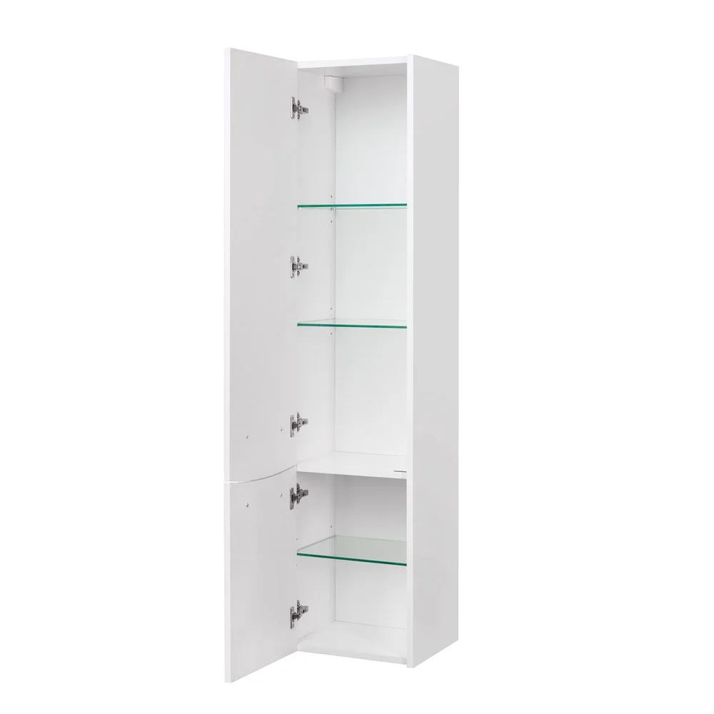 Подвесной шкаф-колонна Инфинити выполнен в современном лаконичном стиле и декорирован фрезеровкой с плавными симметричными линиями, а белый цвет модели позволяет ей вписаться в интерьер любой ванной комнаты. Шкаф изготовлен из влагостойкой ламинированной плиты и высококачественной МДФ, а его глянцевое покрытие, благодаря полиэфирной краске ультрафиолетового отверждения, позволяет защитить поверхность от негативного воздействия внешних факторов. За верхним и нижним фасадами находятся регулируемые по высоте стеклянные полки, позволяющие разместить все необходимые в ванной комнате принадлежности. Петли данного шкафа расположены слева и оснащены механизмом плавного довода, что обеспечивает мягкое и бесшумное закрывание дверок.