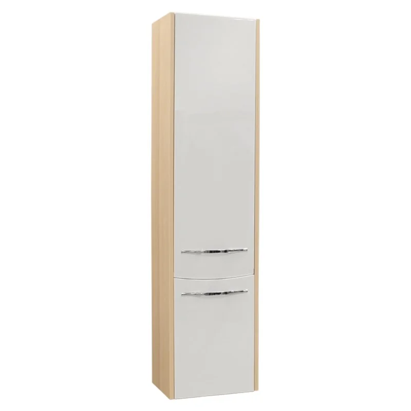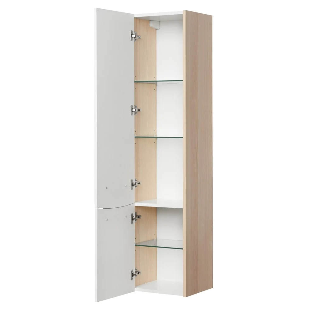 Подвесной шкаф-колонна Инфинити выполнен в современном лаконичном стиле и декорирован фрезеровкой с плавными симметричными линиями, изготовлен из влагостойкой ламинированной плиты и высококачественной МДФ. Его корпус окрашен под натуральное дерево в цвет «ясень коимбра», а глянцевое покрытие его фасадов, благодаря полиэфирной краске ультрафиолетового отверждения, позволяет защитить поверхность от негативного воздействия внешних факторов. За верхним и нижним фасадами находятся регулируемые по высоте стеклянные полки, позволяющие разместить все необходимые в ванной комнате принадлежности. Петли данного шкафа расположены слева и оснащены механизмом плавного довода, что обеспечивает мягкое и бесшумное закрывание дверок.