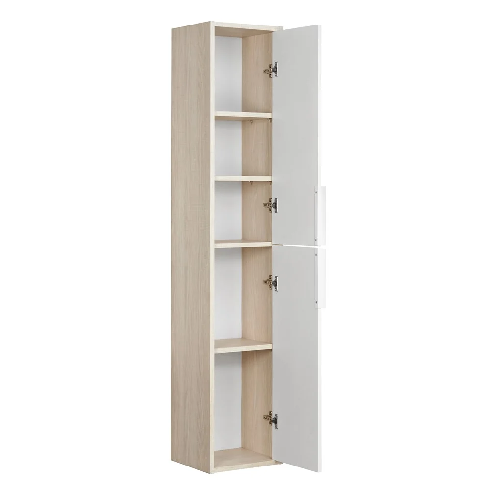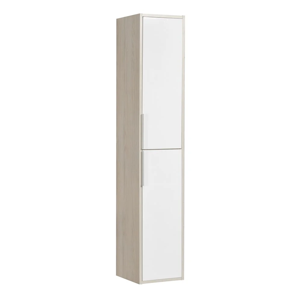 Белоснежный цвет фасадов в сочетании со вставками и боковыми стенками цвета «Ясень фабрик» придадут вашей ванной комнате ощущение свежести, чистоты и уюта.