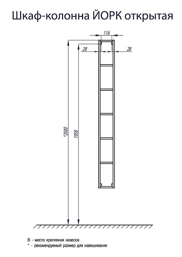 Шкаф-пенал Aquaton Йорк открытая выбеленное дерево