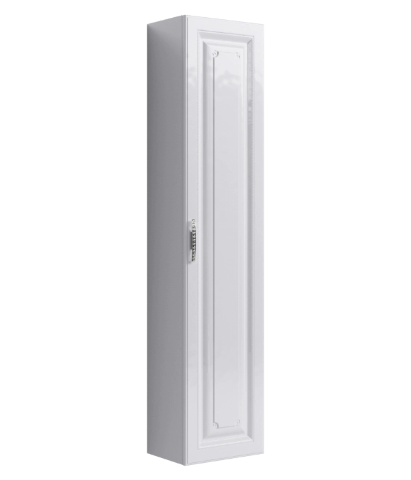 Подвесной универсальный пенал левый/правый пенал с одной дверью на мебельных петлях с доводчиками в белом глянцевом цвете.