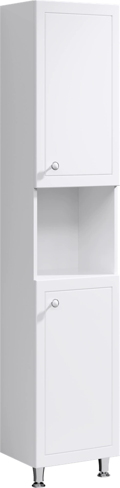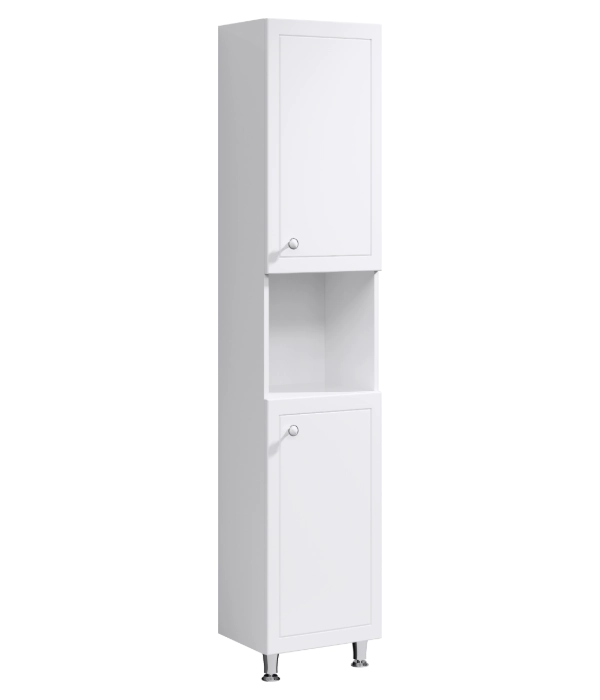 Напольный универсальный (левый/правый) пенал с двумя дверцами, а также открытой нишей для быстрого доступа к предметами.