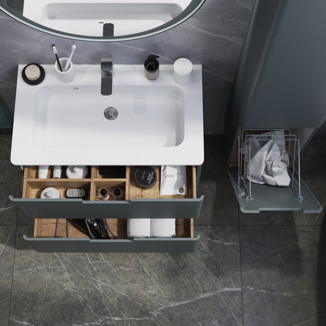 Совершенный радиус фасада представляет собой не только ультрамодное, но и технологически сложное решение, которое под силу воплотить лишь нескольким фабрикам во всем мире. Интегрированные в фасад ручки позволяют сохранить стильный и минималистичный вид мебели. Изделие покрыто экстра матовой эмалью с самовостанавливающимся свойствам.