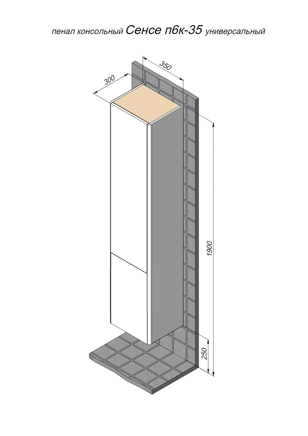Шкаф-пенал BRIZ Сенсе 35 см 248 04-06к35-00 02 БЕЛ правый
