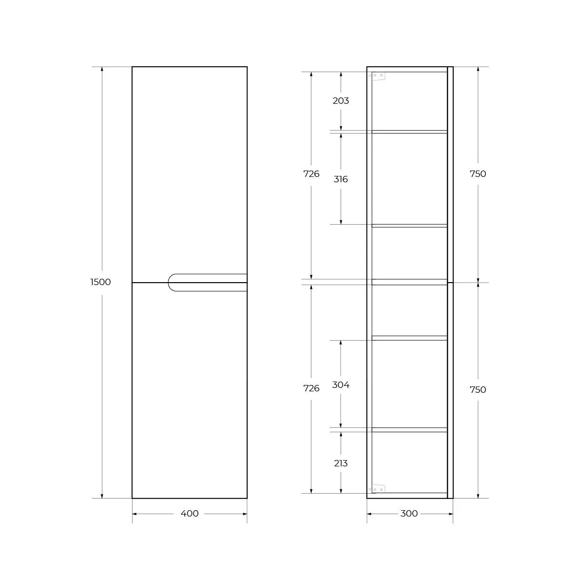 Шкаф-пенал CEZARES DUET-N-1500-2A-SC-GPR-P подвесной, серый жемчужный