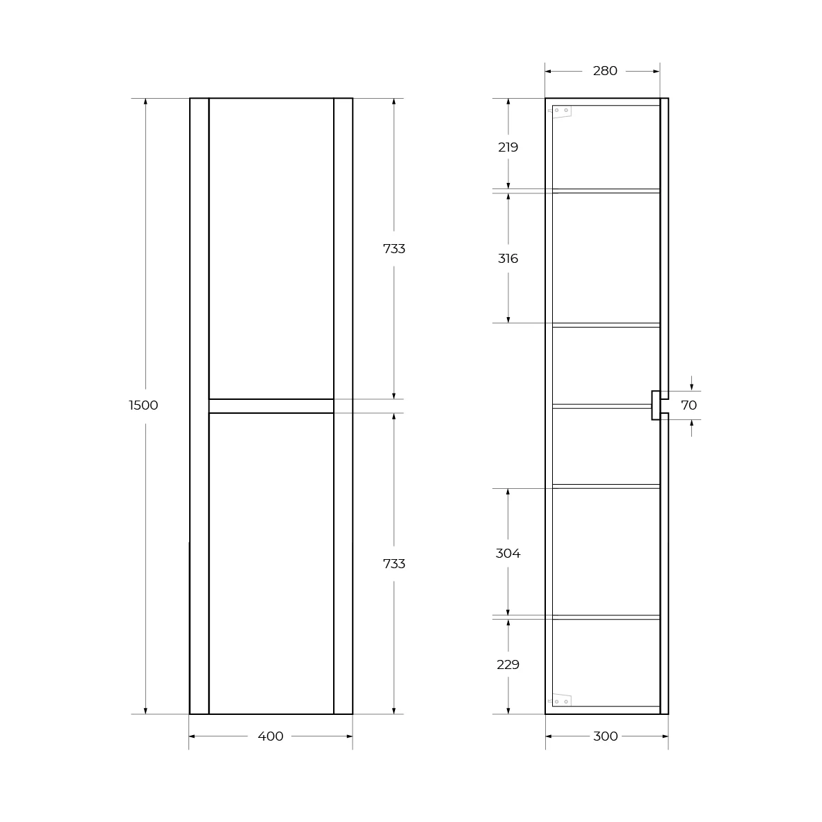 Шкаф-пенал CEZARES RELAX-1500-2A-SO-GM подвесной
