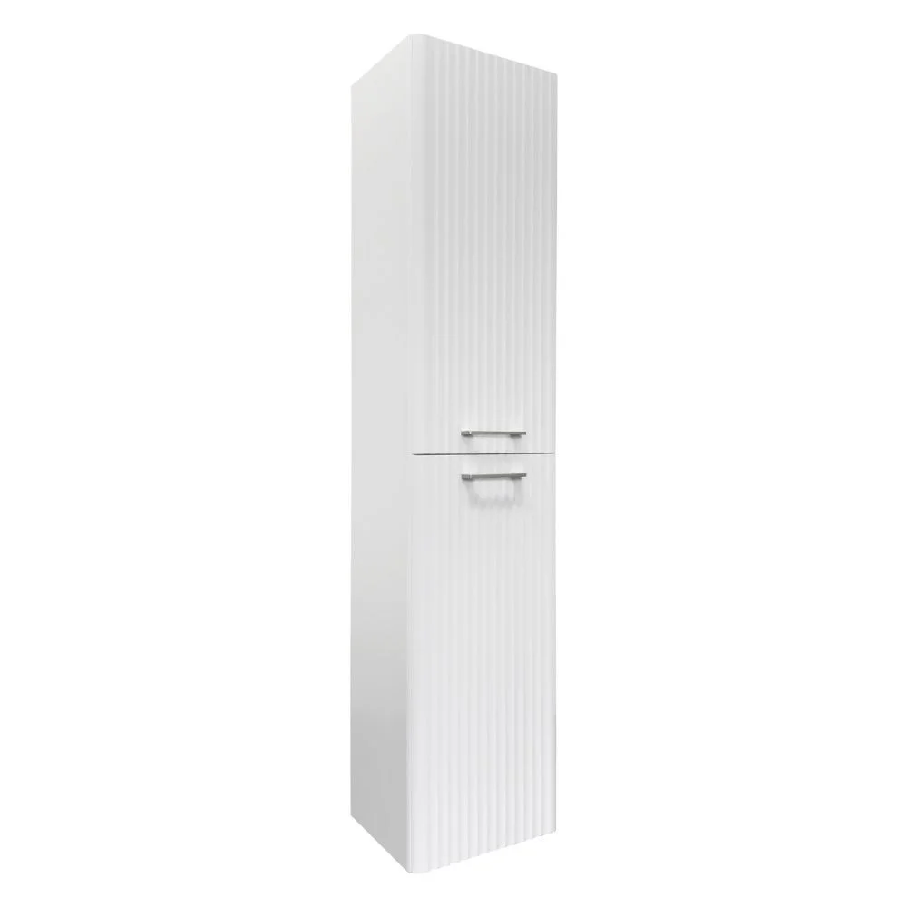 Подвесная шкаф-колонна отличное решение для хранения разных предметов необходимых в ванной комнате. За верхней дверцей и нижней створками по две полки. Петли оборудованы механизмами плавного закрывания.