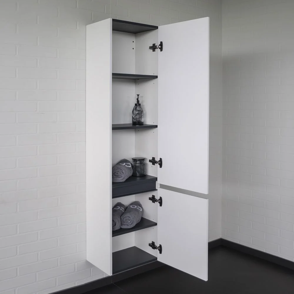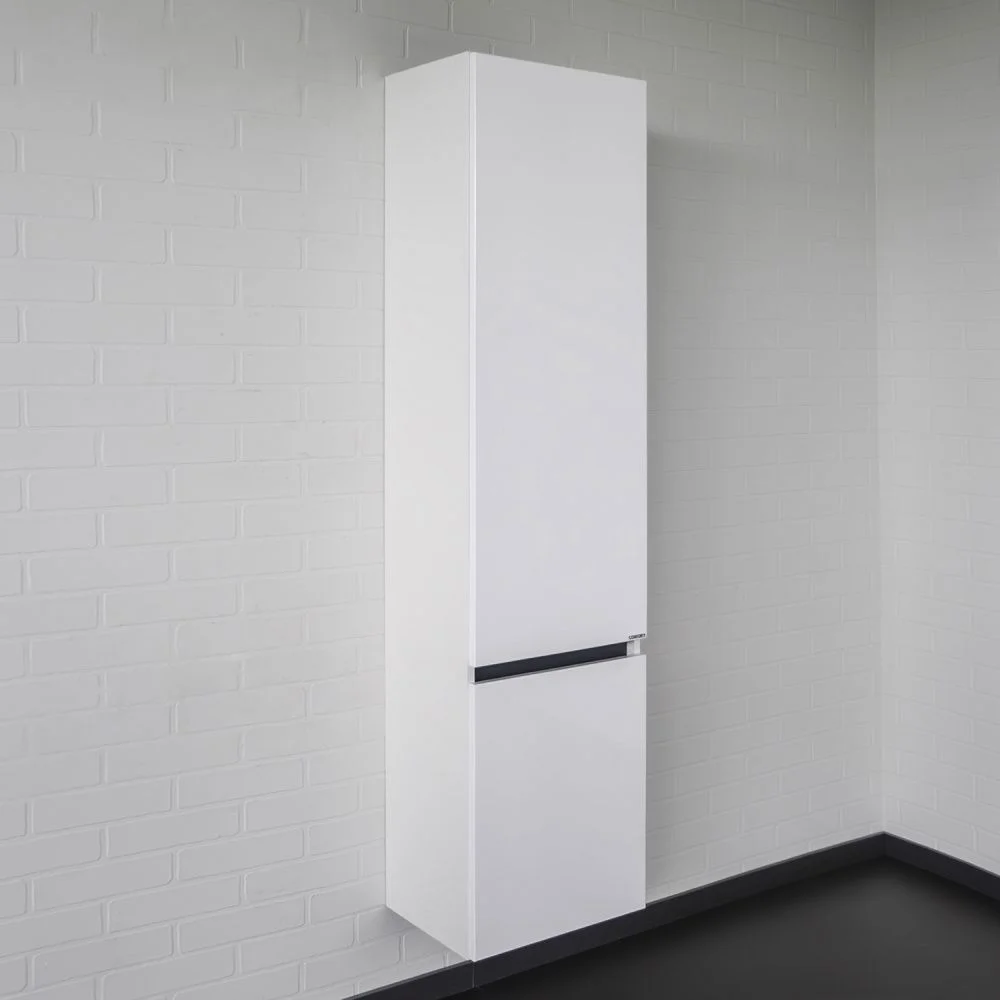 Подвесная шкаф-колонна отличное решение для хранения разных предметов необходимых в ванной комнате. За верхней дверцей три полки, за нижней одна. Фасады изготовлены из МДФ и окрашены белой глянцевой эмалью. Дверцы могут быть подвешены как в правом, там и в левом исполнении. Петли оборудованы механизмами плавного закрывания.