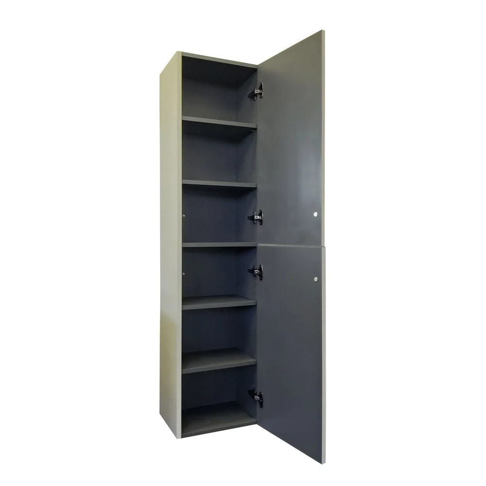 Подвесная шкаф колонна с двумя створками. Створки с системой открывания push to open. Корпус шкаф-колонны изготовлены из влагостойкого ЛДСП. Фасады пенала из МДФ фрезерованы кантом по периметру. Корпус и фасад колонны затянуты в матовую пленку цвета "серый шелк". Шкаф-колонна универсальна, фасады могут быть установлены как с левой, так и с правой стороны.