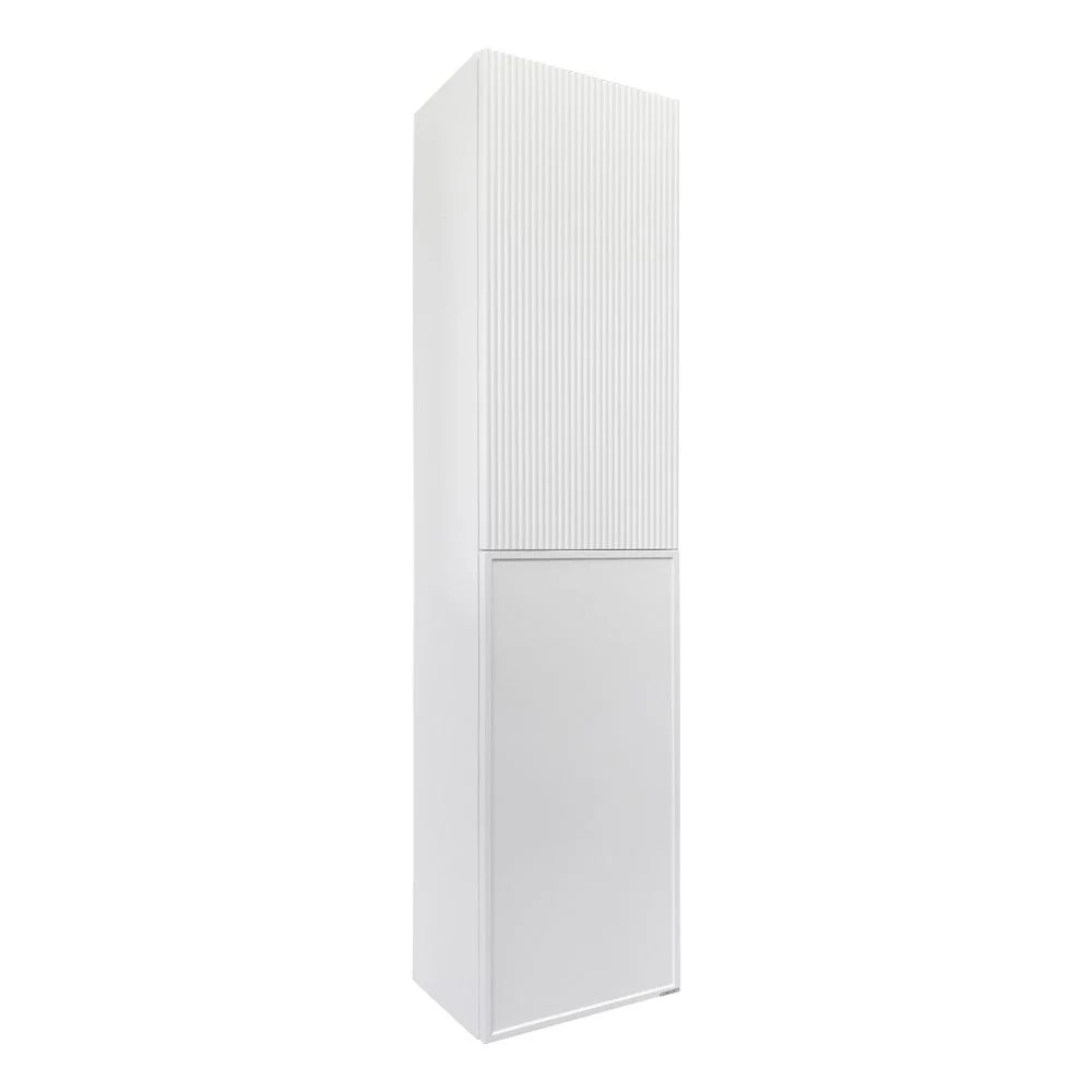Подвесная шкаф колонна с двумя створками. Створки с системой открывания push to open. Корпус шкаф-колонны изготовлены из влагостойкого ЛДСП. Фасады пенала из МДФ фрезерованы кантом по периметру. Корпус и фасад колонны окрашены белой матовой эмалью. Шкаф-колонна универсальна, фасады могут быть установлены как с левой, так и с правой стороны.