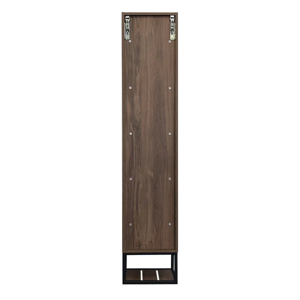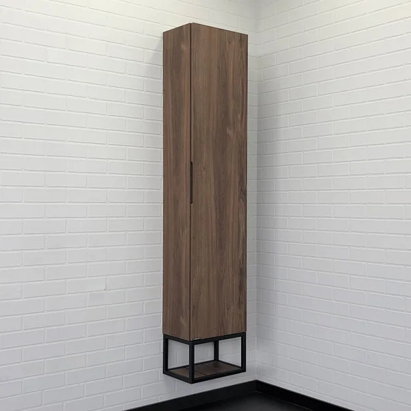Подвесной шкаф - со створкой и пространством для открытого хранения. Фасад и корпус из влагостойкого ЛДСП. Пространство открытого хранения на основе - металлическая рама из окрашенного в черный цвет металла. Петли створки с механизмами плавного закрывания. Створка может быть подвешена с правым или левым расположением петель.