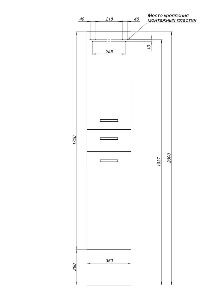 2 дверцы, 1 ящик, 4 стеклянные полки