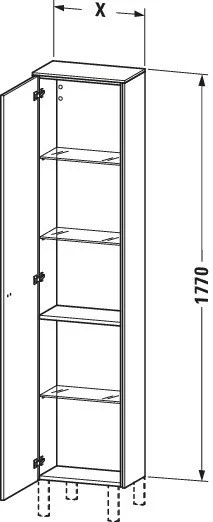 1 дверца, 1 деревянная полка, 3 стеклянные полки