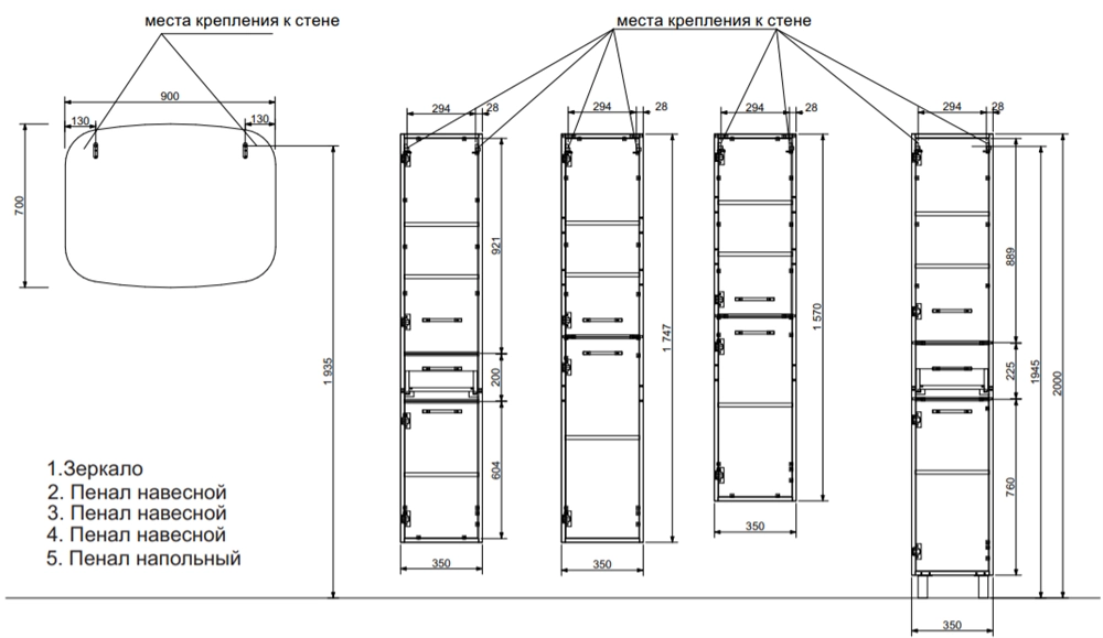 Коллекция Barcelona выполнена в стиле модерн. Плавные линии и формы подчеркивают элегантность комплекта, а разнообразие комплектации позволяет использовать мебель в качестве маркера вашего собственного стиля. Подвесной пенал состоит из трех частей с распашными дверцами и ящиком. В верхней и нижней части пенала расположены полки, которые можно регулировать по высоте по мере необходимости, ящик предназначен для мелких предметов.