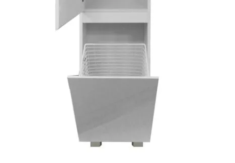 Напольный пенал коллекции Dallas Luxe олицетворение простоты и функциональности. Отсутствие лишнего декора и строгие формы шкафа позволят вписать его в любой интерьер. Пенал разделяется на 2 зоны. В верхней части пенала расположено большое отделение с тремя полками с распашной дверцей, снизу предусмотрено отделение с корзиной.