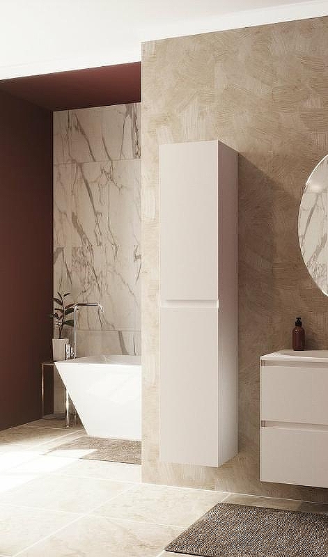 Коллекция Malta выполнена в стиле минимализм, характеризующийся лаконичностью и ясностью композиции. Подвесной пенал Malta c распашными дверцами состоит из двух частей. В верхней части расположены две полки, в нижней одна. Их можно регулировать по высоте по мере необходимости. Интегрированные ручки выполнены за счет скошенных фасадов. Мебель выполнена из влагостойкого ЛДСП и качественного MDF с использованием эмали RENNER (Италия). Ящики снабжены системой плавного закрывания. Для мебели используется фурнитура Samet (Турция).