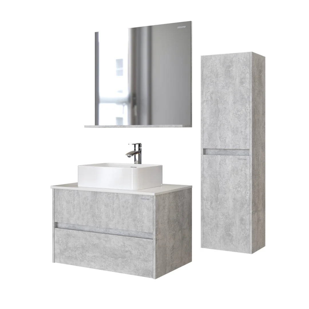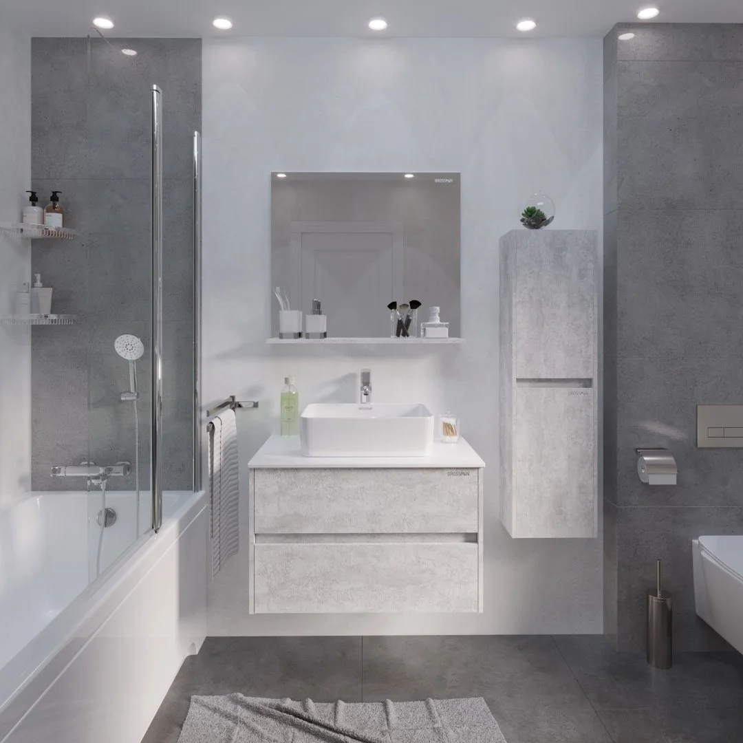 Подвесной пенал Эдванс 30 см - отражает современные тенденции в дизайне мебели для ванных комнат: и создан для тех, кто ценит современный лаконичный дизайн, холодный эффект светлого цемента.