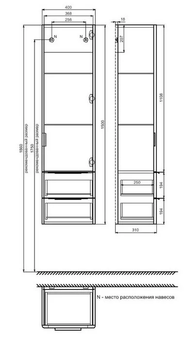 Шкаф-пенал IDDIS Calipso 40 подвесной белый (CAL4000i97)