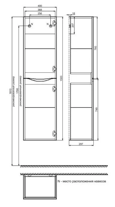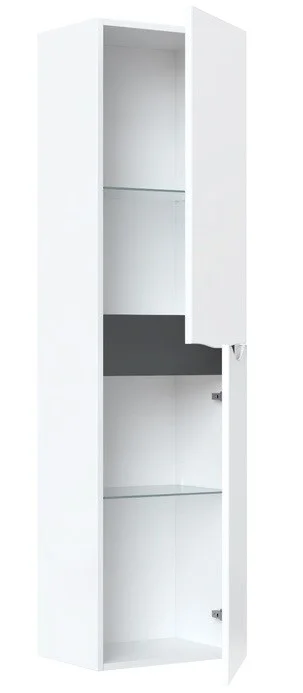 Пенал для ванной комнаты, подвесной. Цвет белый. Ширина 40 см. Фасады МДФ в эмали, фрезеровка. Две дверцы с интегрированными ручками. Стеклянные полки с фиксаторами. Упаковка: картон, пленка, пенопластовые уголки.