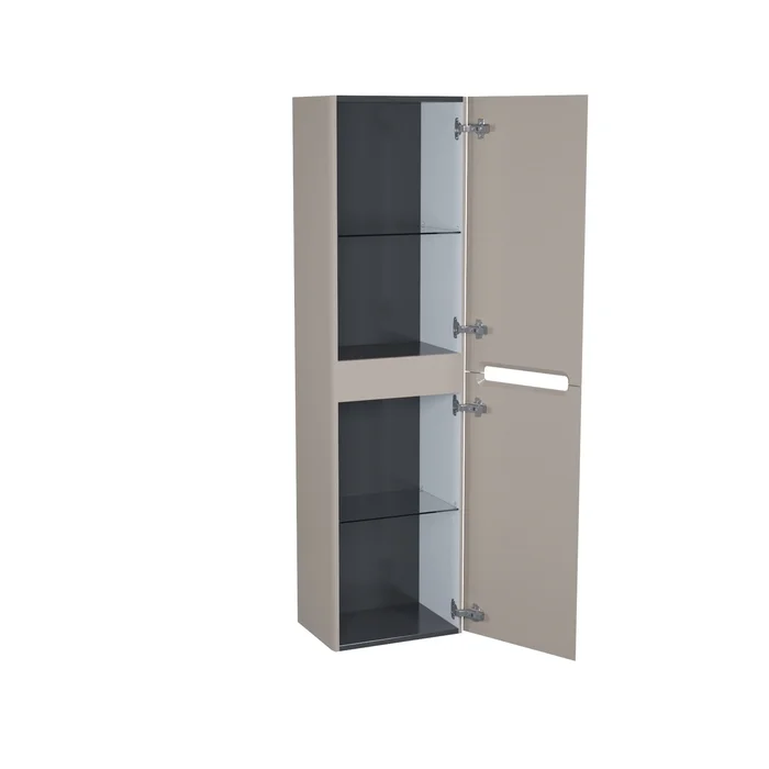 Подвесной пенал Edifice в теплом оттенке капучино – воплощение современного минимализма. Мягкие линии корпуса в сочетании с удобными интегрированными ручками выглядят свежо и актуально. Смотрится компактным, легким и не усложняет процесс уборки в ванной благодаря подвесной конструкции.
