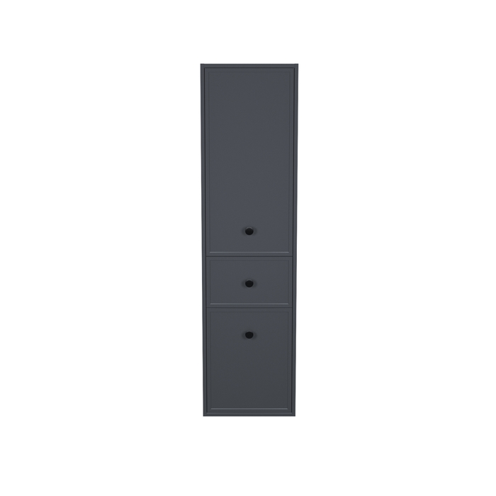 Подвесной пенал Torr трендового темно-серого цвета сочетает в себе узнаваемый стиль и практичность популярного скандинавского дизайна. Четкие формы пенала, фасады с декоративной филенкой, круглые ручки смотрятся гармонично и впишутся в любой современный интерьер.