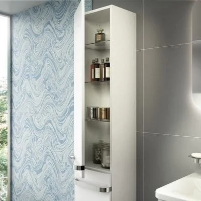 TONIC II Узкий пенал (ширина 35 см), 2 дверцы, система плавного закрытия, для подвесного монтажа. В комплекте: крепеж, 3 стеклянные полки в верхней части, 1 стеклянная полка в нижней части. Левая версия. Ручки в комплект не включены