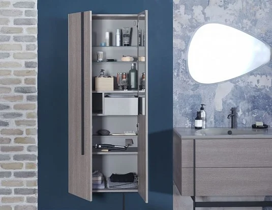 Nouvelle Vague 60х34х147см, пенал, реверсивная установка двери, подвесной монтаж, фактурный дуб, 2 стеклянные полки, 1 фиксированная полка, арт. EB304