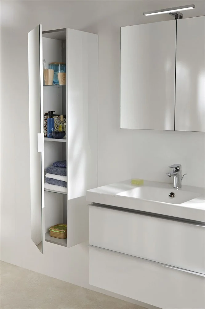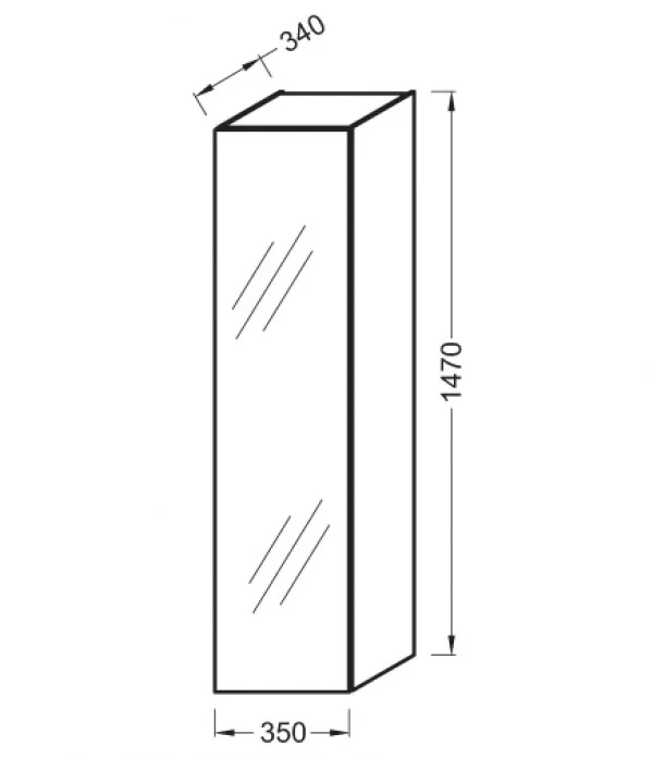Odeon Up 35х34х147см, пенал, реверсивная установка двери, подвесной монтаж, белый блестящий, 1 зеркальная дверца, с тремя встроенными полками, арт. EB873RU-J5