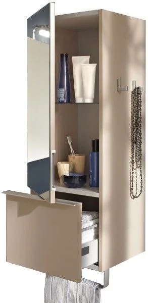 2 крючка для украшений, 1 полотенцедержатель и 1 зеркальная дверца для комфортного ежедневного использования.