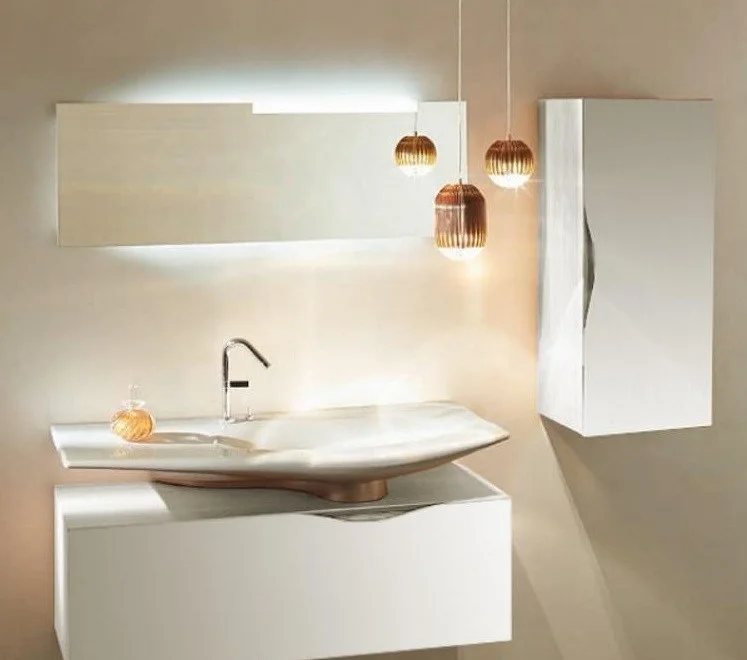 Дополнительное пространство, за счет 1 внутреннего ящика, 2 стеклянных полочки и зеркала с внутренней стороны дверцы