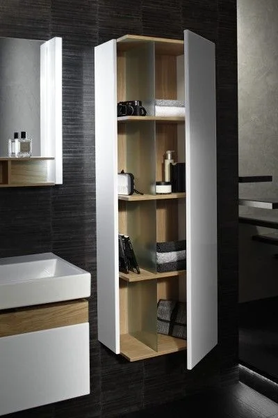 Коллекция Terrace оптимизирует доступное пространство, упрощает хранение туалетных принадлежностей благодаря вертикальной нише с 4 полками. Роскошная отделка полочек из цельного дерева