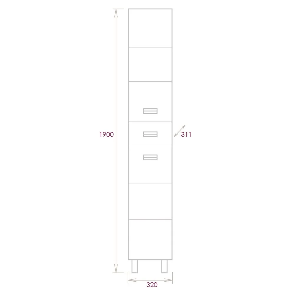 Корпус Шкаф-пенала выполнен из ЛДСП, фасад - из МДФ в пленке, устойчивых к механическим воздействиям, перепадам температур и высокой влажности.