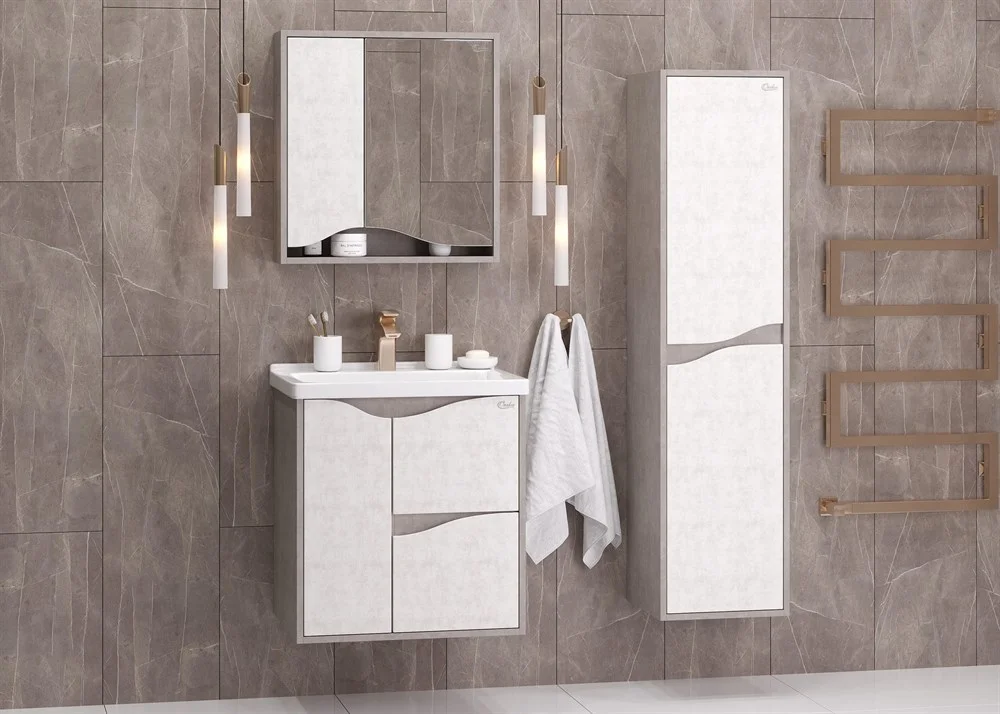 Подвесной Шкаф-пенал Onika БРЕНДОН 35.10 поможет создать особенную атмосферу ванной комнаты: текстуры камня и бетона гармонично дополняют друг-друга, создавая сдержанный выразительный акцент в интерьере.