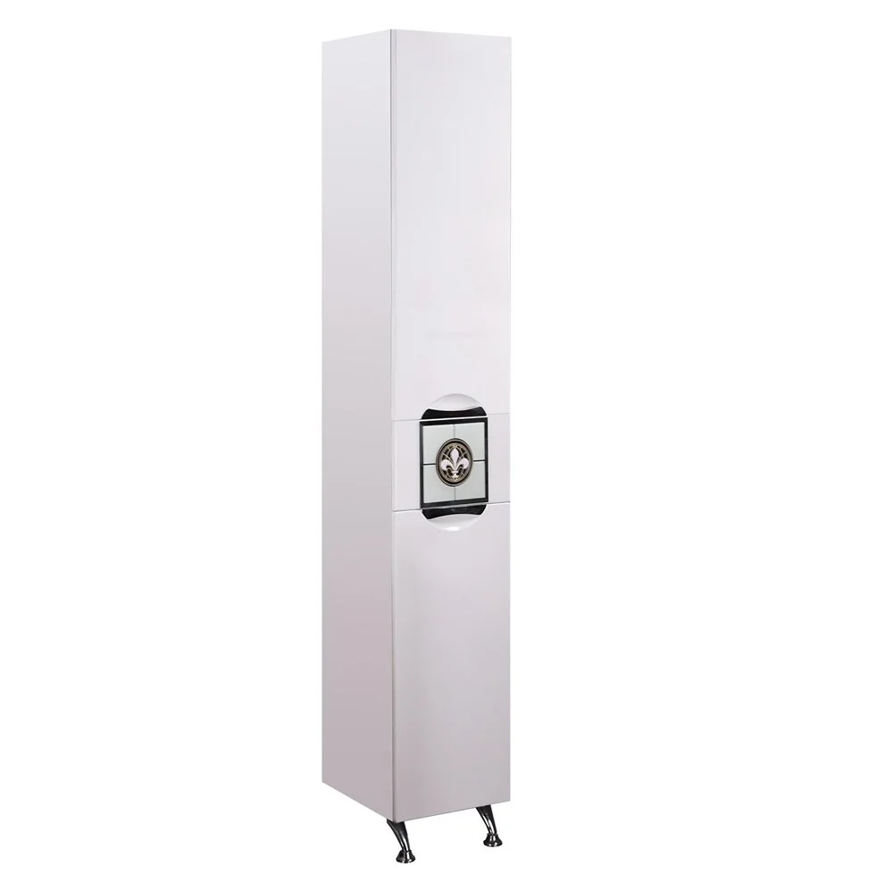 Белоснежный глянцевый фасад Шкаф-пенала украшает декоративный витраж на зеркальном полотне - визитная карточка коллекции ФЛОРЕНА.