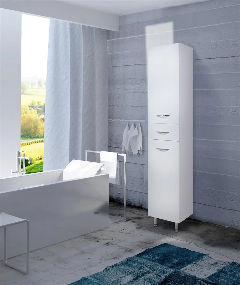 Корпус Шкаф-пенала выполнен из ЛДСП, фасад - из МДФ в пленке, специально предназначенных для использования в условиях высокой влажности.