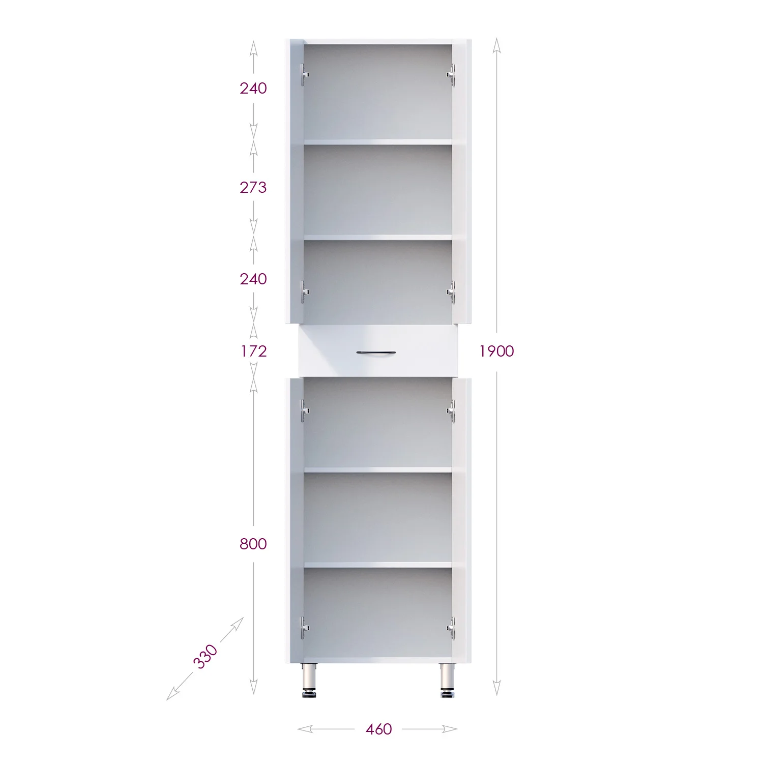Размер пенала с ножками: 46х33х190 см.