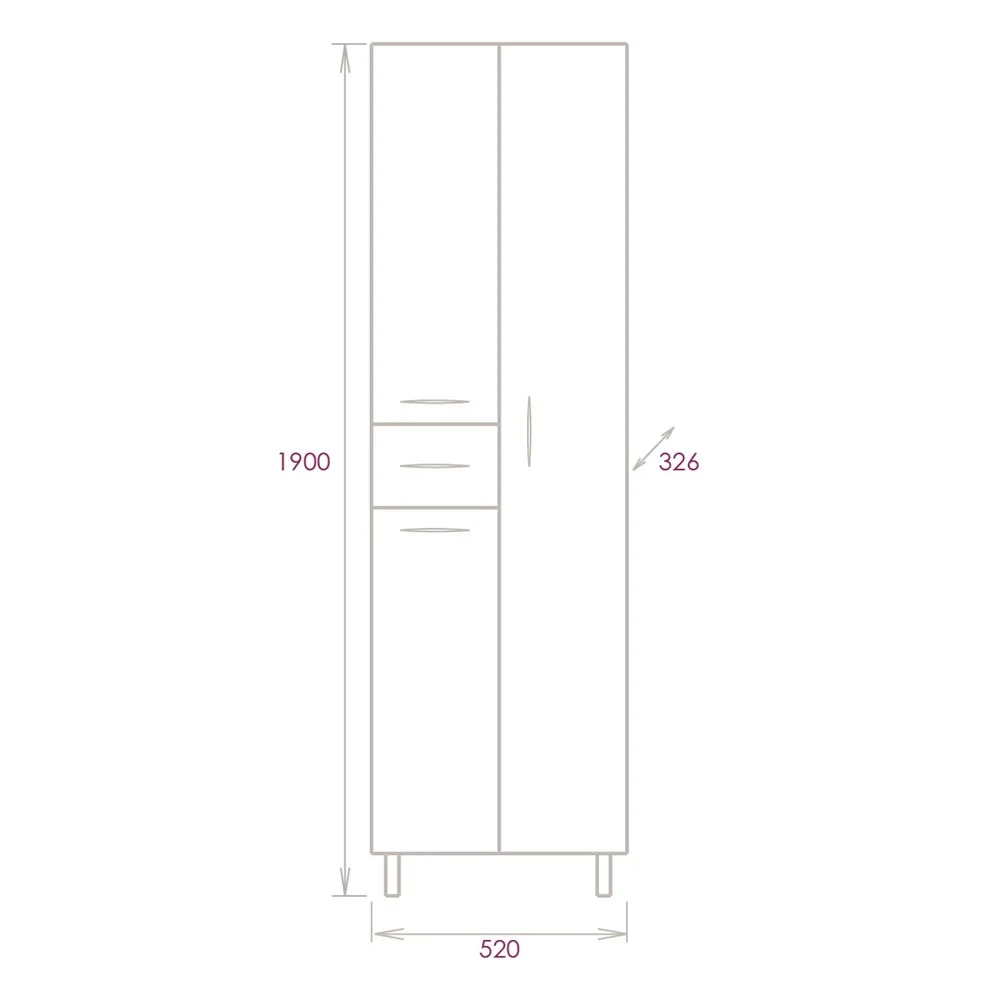 Конструкция Шкаф-пенала предусмотрела огромное пространство для хранения, в котором поместятся все необходимые вещи: 3 больших распашных отделения с механизмом плавного закрывания и выдвижной ящик с направляющими полного выдвижения.