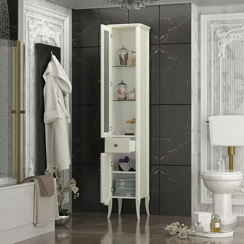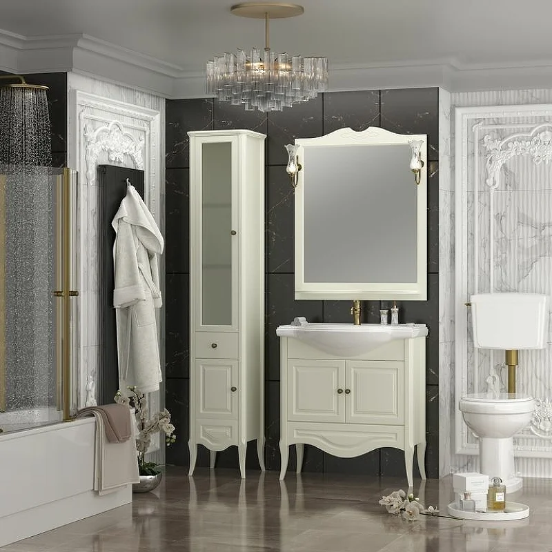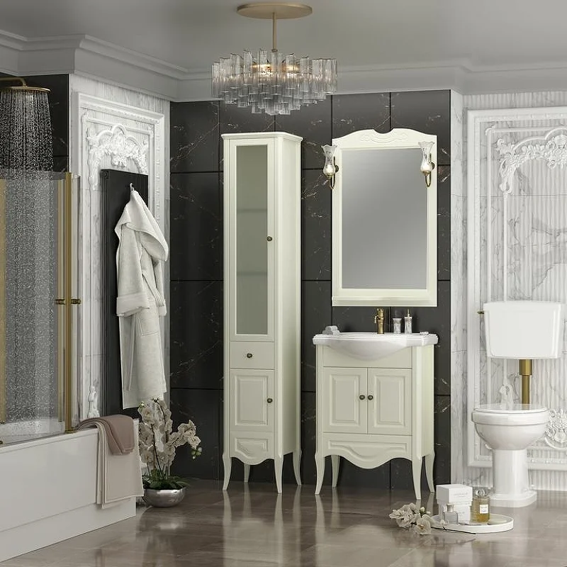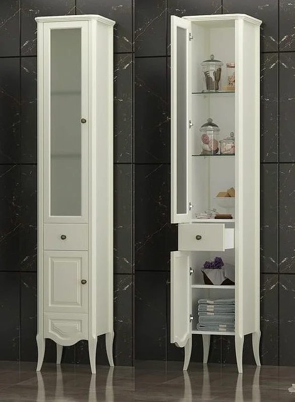 Мебель оснащена изящной керамической раковиной и механизмами плавного закрывания Hettich (Германия).