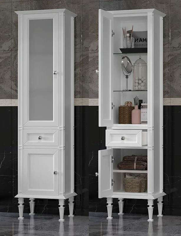Коллекцию КАНТАРА характеризует филигранная фрезеровка ножек в итальянском стиле и шикарная глубокая керамическая раковина — столешница в размерах 85 или 105 см.