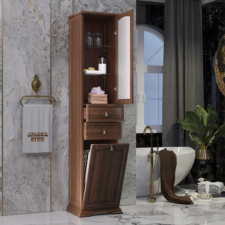 Несколько вариантов пеналов — узкий, стандартный (с бельевой корзиной) и двухстворчатый — удачно завершают комплектацию коллекции.