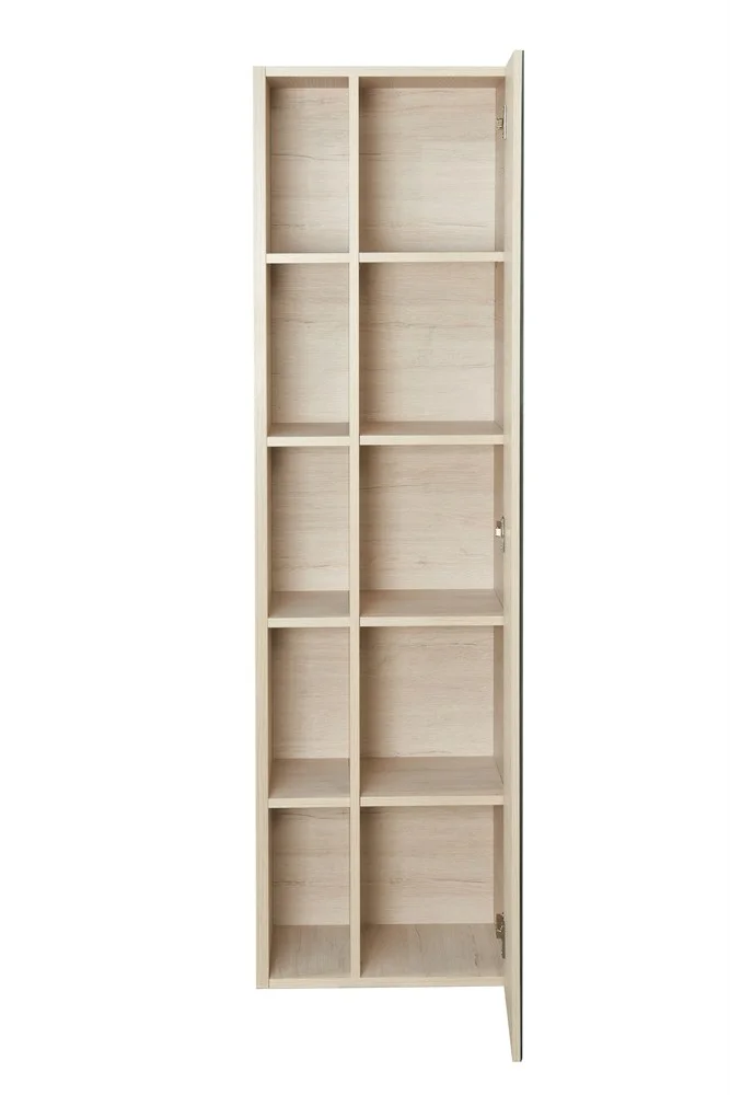 Шкаф-колонна Etna в современном стиле от испанского бренда Roca, выполненная из высококачественной влагостойкой ЛДСП c зеркалом и открытыми полочками.