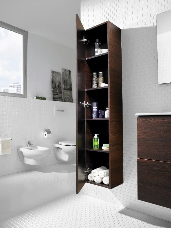 Шкаф-колонна Victoria Nord в современном стиле от испанского бренда Roca, выполненная из высококачественной влагостойкой ЛДСП, с регулируемыми по высоте полочками.