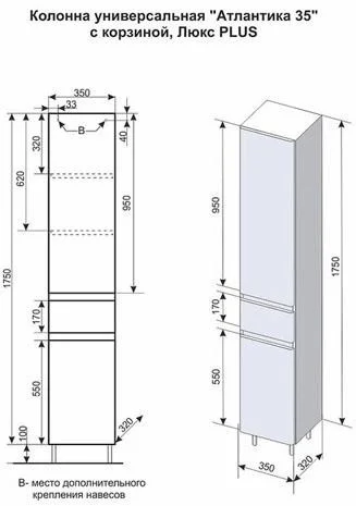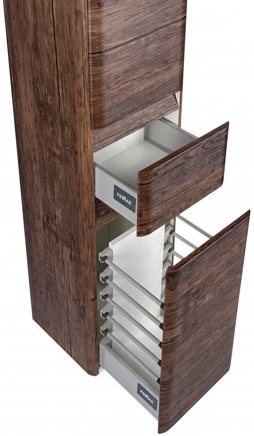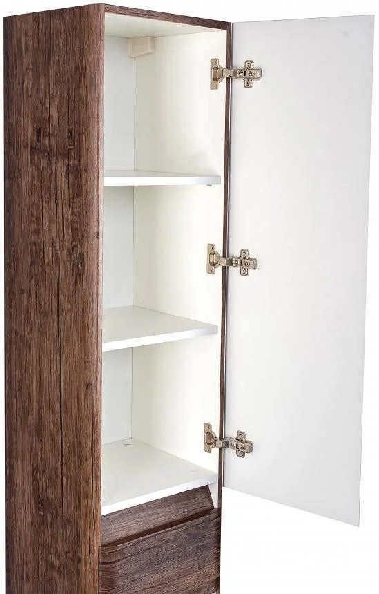 Корпус шкафа-пенала линейки Атлантика 36 см от производителя Style Line выполнен из МДФ и представлен в эффектной отделке состаренного дерева. Несмотря на свою массивность, смотрится респектабельно и элегантно благодаря сглаженным углам корпуса. Колонна содержит в себе несколько вместительных полок, выдвижной ящик и корзину для белья, в которых вы сможете разместить большинство необходимых для принятия банных процедур приспособлений и вещей. Такая конструкция экономит пространство и является незаменимой для ванных помещений небольших габаритов.