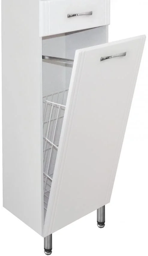 Колонна напольная бренда "Style Line" Эко Стандарт 36 с бельевой корзиной. Фурнитура - хром, эксклюзивный декор "Луино" - ламинация внутренней стороны изделия. Направляющие полного выдвижения Hettich; сборка изделия с помощью эксцентриковых стяжек Hafele; все материалы полностью влагостойкие