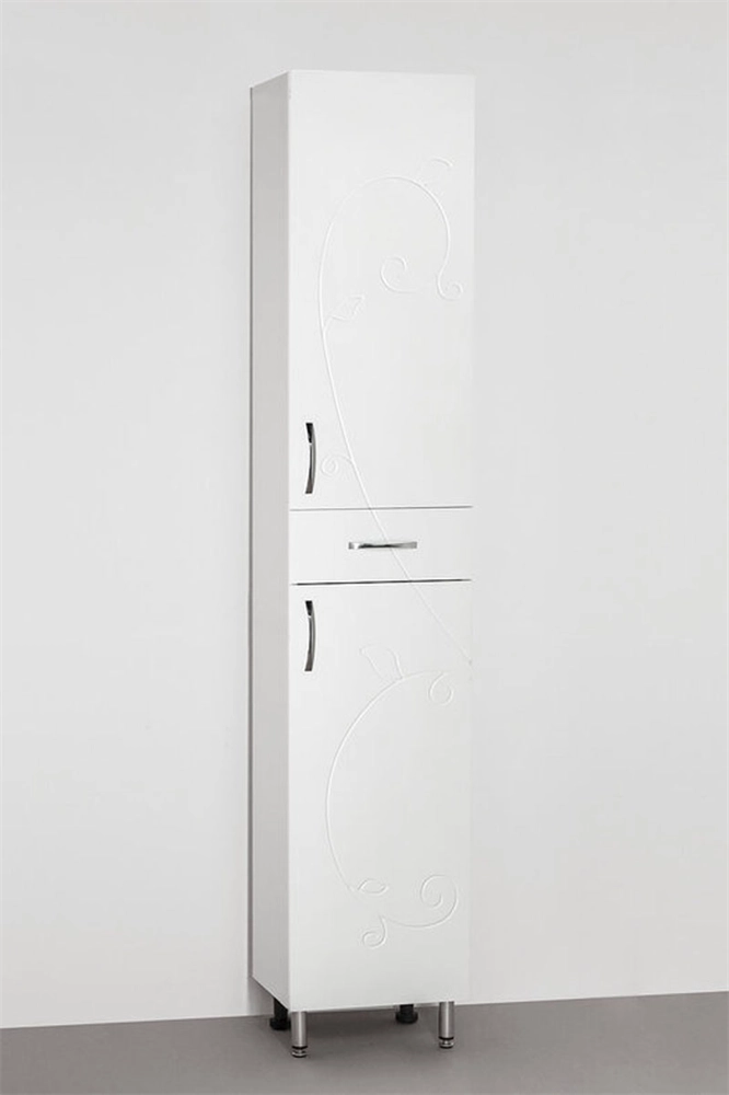 Колонна напольная бренда "Style Line" Эко Фьюжн 36. Фурнитура - хром, тонкая элегантная декоративная фрезеровка фасадов. Направляющие полного выдвижения Hettich; эксклюзивный декор "Луино" - ламинация внутренней стороны изделия; сборка изделия с помощью эксцентриковых стяжек Hafele; все материалы полностью влагостойкие